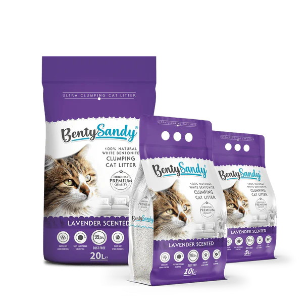 Thanks to the composition of 100% natural white bentonite mineral and the scent of Lavender, it is a cleaner cat litter suitable for long-term use. High quality white bentonite naturally keeps bad odors under control, the Lavender scent that emerges when bentonite is moistened creates a pleasant and clean odor. It gives an outstanding performance with its high clumping feature. It is available in 5 lt, 10 lt and 20 lt size