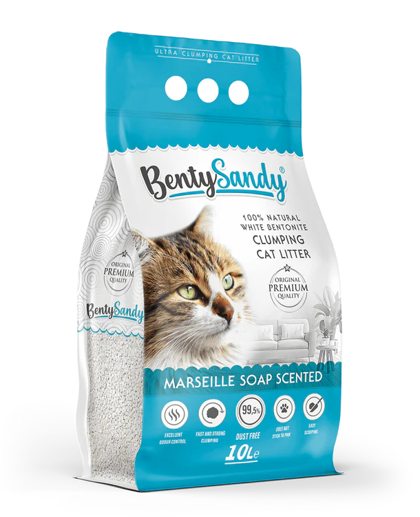 Marseille Soap scented BentySandy stands out with its scent and has ultra clumping properties. It does not stick to the paws and is 99.5% dust-free.
