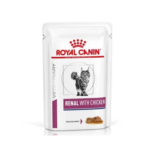 Royal Canin Feline Renal with chicken is formulated to support renal function in case of chronic kidney disease. Contains EPA and DHA, a complex of antioxidants and a low phosphorus level.